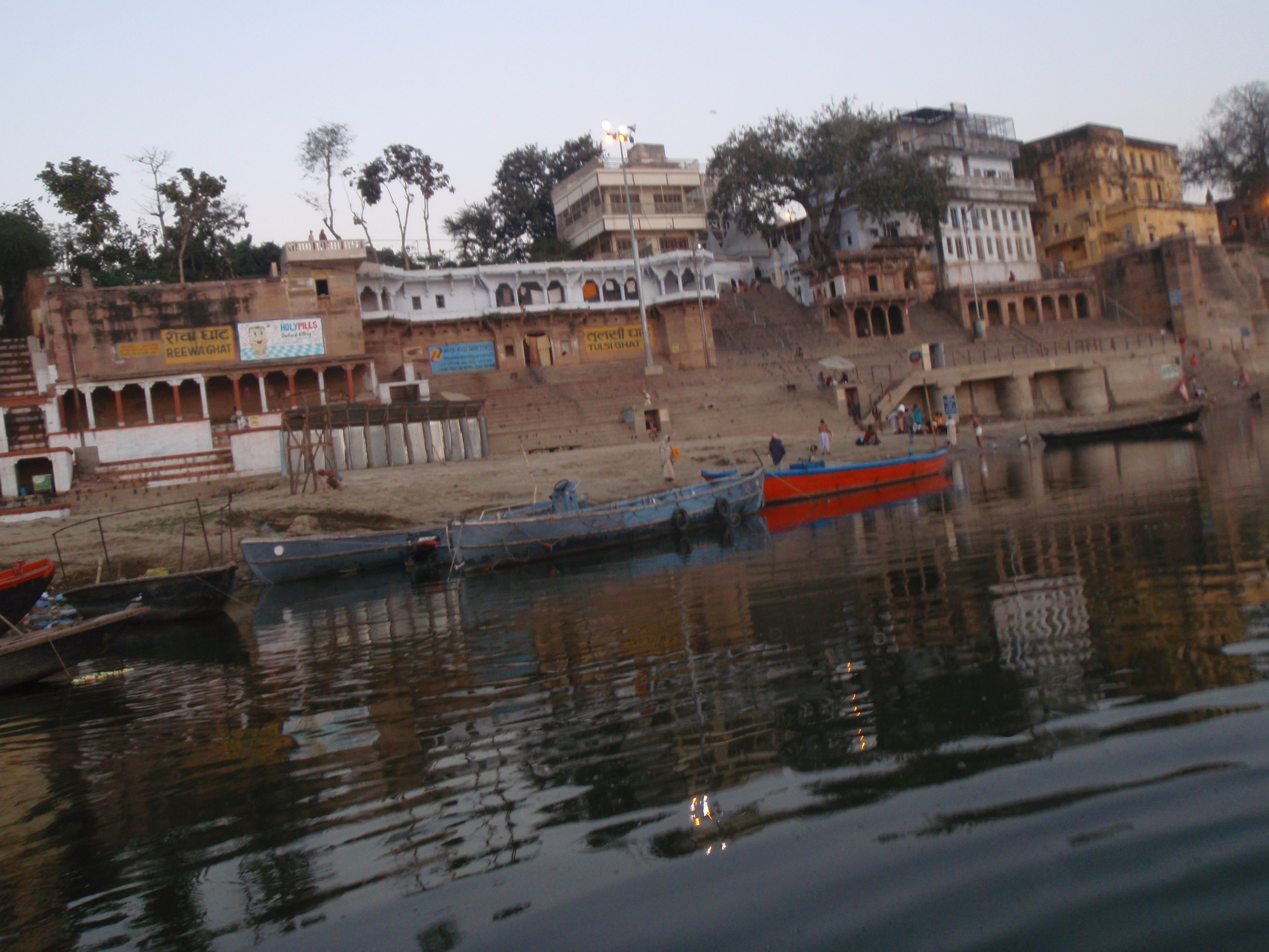 So, what else? I have been experiencing a lot here in Varanasi. Watched the sunrise over the Ganga, which is just a block or two from the guest house. It was pretty rad. There was a third quarter moon in the sky as well. I took some pictures. Also it seems there are weddings every day here. And music in the streets all the time. It’s awesome. Smoked some apple hookah at a Mediterranean restaurant last night. Trying allll sorts of new foods. Last night we had a lecture from a really old guy about Hindu philosophy and Indian culture. In the morning we have Hindi classes, which are challenging but going well. I sometimes find myself wanting to speak or interpret things in french, probably b/c it’s my go to foreign language I guess. I feel like even though I can’t read the board, I am doing pretty well in class, definitely catching on conceptually and structurally, and just feeling pretty good about it in class, though still too shy to really speak it to people on the streets and in the shops and all that.