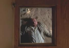 Gus got his face half blown off and walked out of the room and straightened his tie. Maybe gilding the lily, maybe a believability stretch. Still a nice touch. It’s a lot like the scene where Gus makes himself throw up after taking the poison in 410 “Salud,” he was alone, no one was watching, and he was still so Gus. Same here, he’s pretty much dead, in shock, and habit takes over. Gus doesn’t just put on a face for the outside world of this meticulous, inscrutable, insanely professional man. Gus is Gus to the core.
